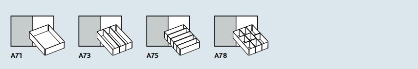 Inserts for the class 150 raaco boxesAvailable either loose or with an embossed tray to keep the inserts in position. For usage in the following :- Available Sizes |